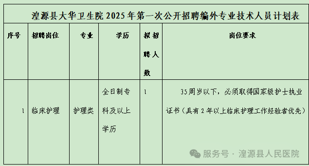 湟源县第一医共体大华分院2025年第一次公开招聘编外专业技术人员公告一、招聘原则