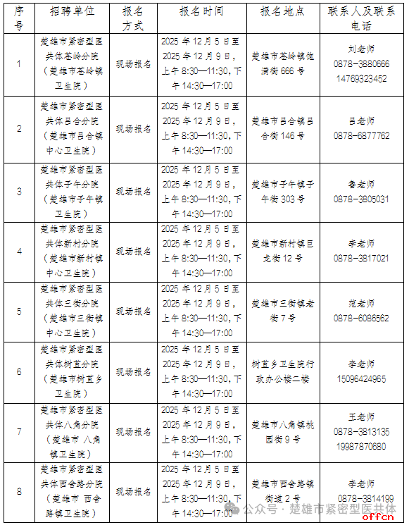 此次计划招聘专业技术人员17名,具体招聘人数、岗位、条件详见《楚雄市紧密型医共体2025年第二批编制外职工招聘岗位信息表》。