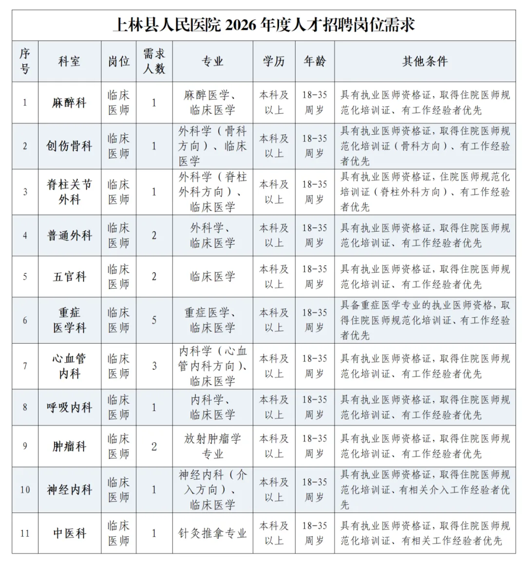 2026广西南宁上林县人民医院招聘编外工作人员57人公告已发布,医药人才网为大家收集整理事业单位卫生系统招聘信息,提供相关备考电子版资料和辅导课程。更多卫生人才招聘信息,可点击广西卫生人才招聘栏目。