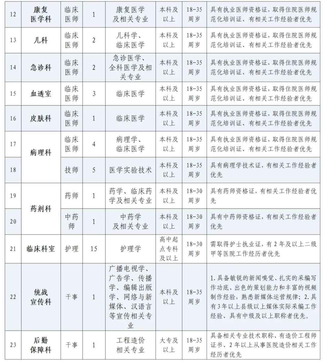 (三)学历及资质要求:具备相应的学历,各专业技术岗须取得相应的执业准入资格或专业技术资格;