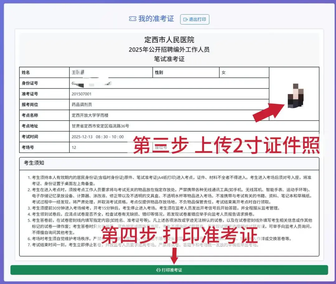 1.已完成报名且资格审核通过的考生(不包括电话通知资格审核未通过人员),请于2025年12月11日至12月13日8:00点击准考证打印网址按照操作提示打印准考证。(请通过电脑端完成上述操作)