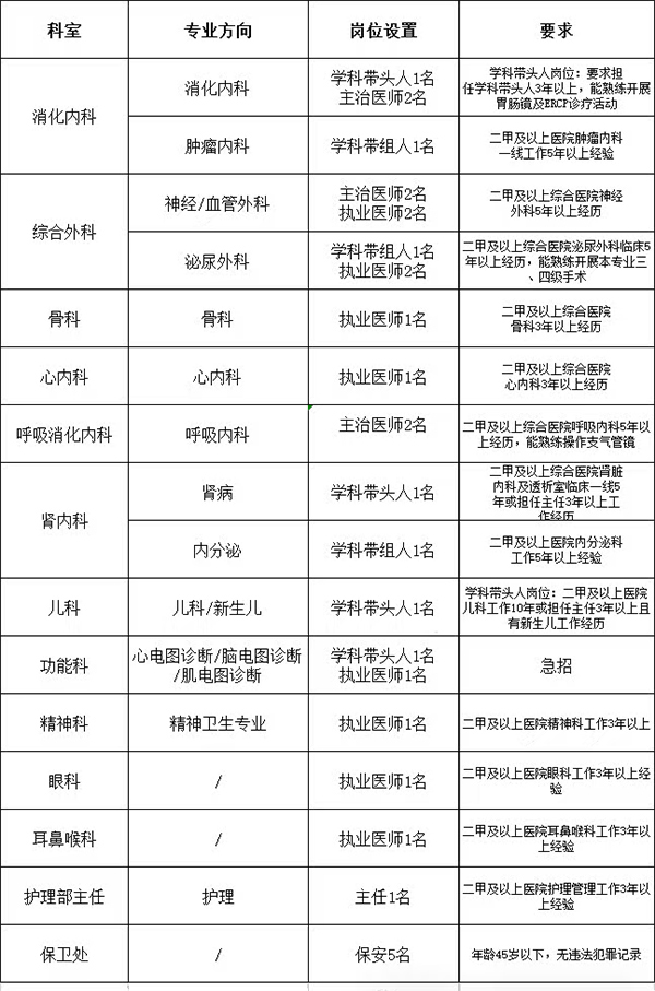4.医技科室岗位和行政职能科室岗位详见岗位要求。