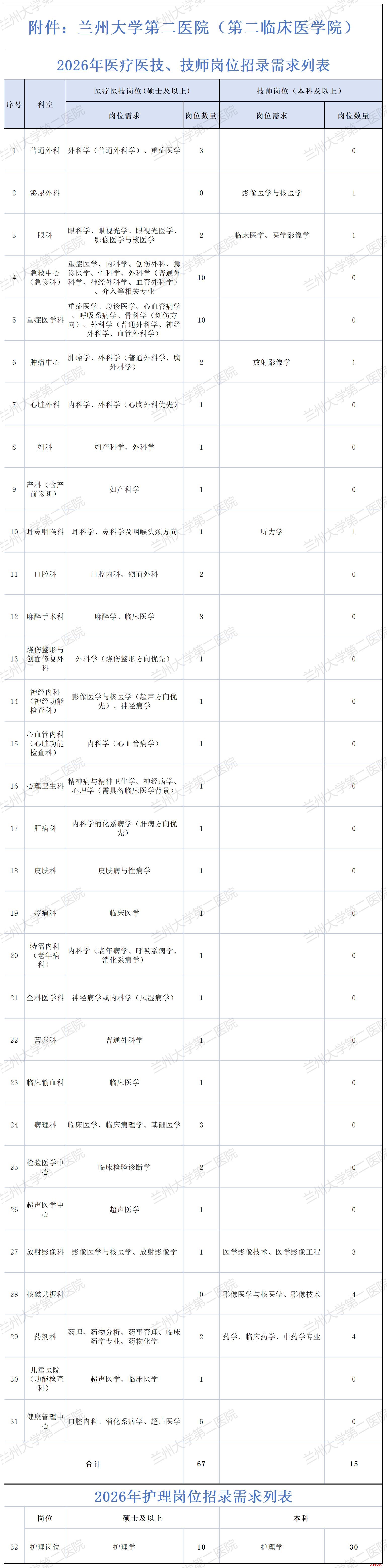 医疗医技、技师及护理岗位,具体招聘岗位及需求如下: