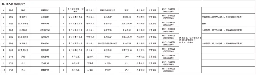③ 报名地点:甘肃省酒泉市肃州区雄关路22号,联勤保障部队第九四四医院政治工作处办公室。