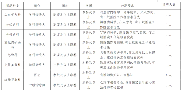 主要开设:心血管内科、神经内科、消化内分泌科、呼吸内科、老年医学科、骨科、普外科、泌尿外科、妇产科、儿科、急诊科等26个临床科室及6个医技辅助科室。