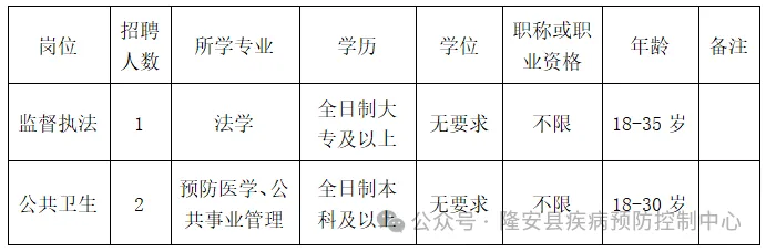 根据工作需要,隆安县疾病预防控制中心面向社会公开招聘编外工作人员3名。现将有关事项公告如下: