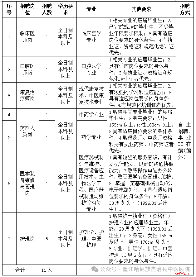 2026年普洱市墨江县中医医院招聘编外人员公告(11人)已发布,医药人才网为大家收集整理事业单位卫生系统招聘信息,提供相关备考电子版资料和辅导课程。更多卫生人才招聘信息,可点击云南卫生人才招聘栏目。
