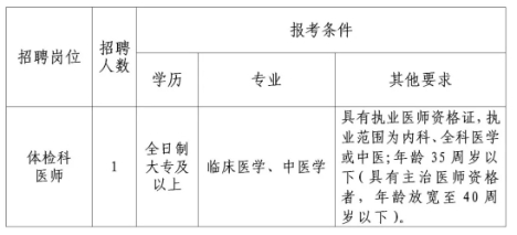 现因医院工作需要,拟招聘体检科医师岗位编外聘用人员1人,具体如下: