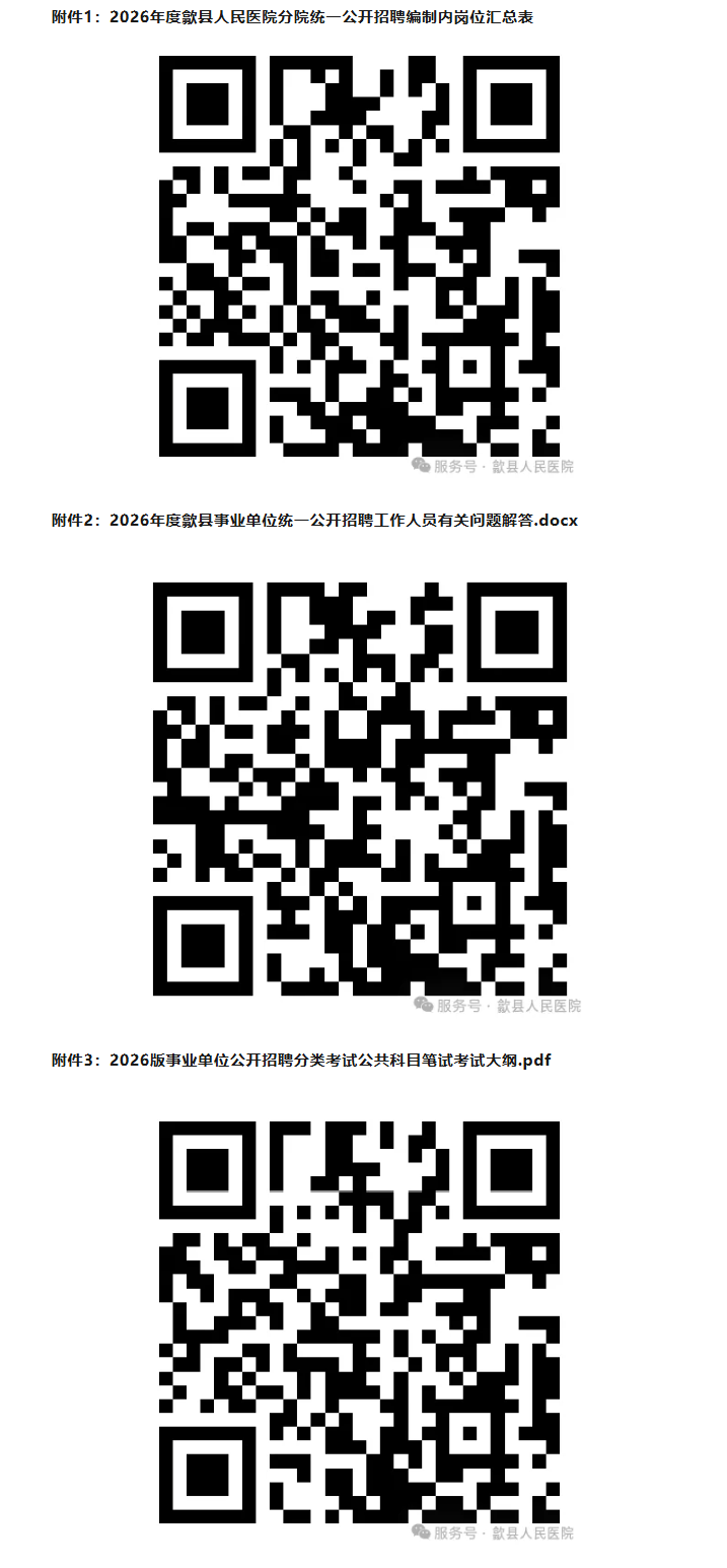 2026年黄山市歙县人民医院分院公开招聘编制内卫生专业人才5名已发布,医药人才网为大家收集整理事业单位卫生系统招聘信息,提供相关备考电子版资料和辅导课程。更多卫生人才招聘信息,可点击安徽卫生人才招聘栏目。