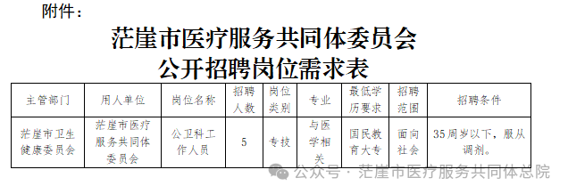 附件1:茫崖市茫崖市医疗服务共同体委员会面向社会公开招聘工作人员岗位需求表