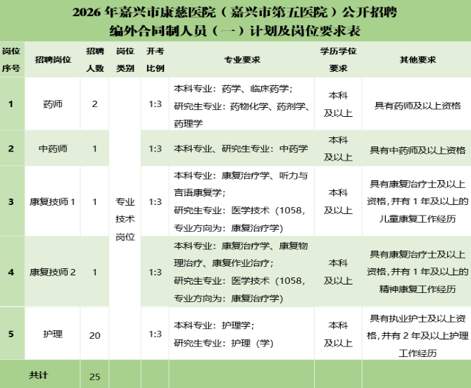 (1)《嘉兴市康慈医院(嘉兴市第五医院)2026年公开招聘编外合同制人员报名登记表》(需本人签名)一式一份(见附件);