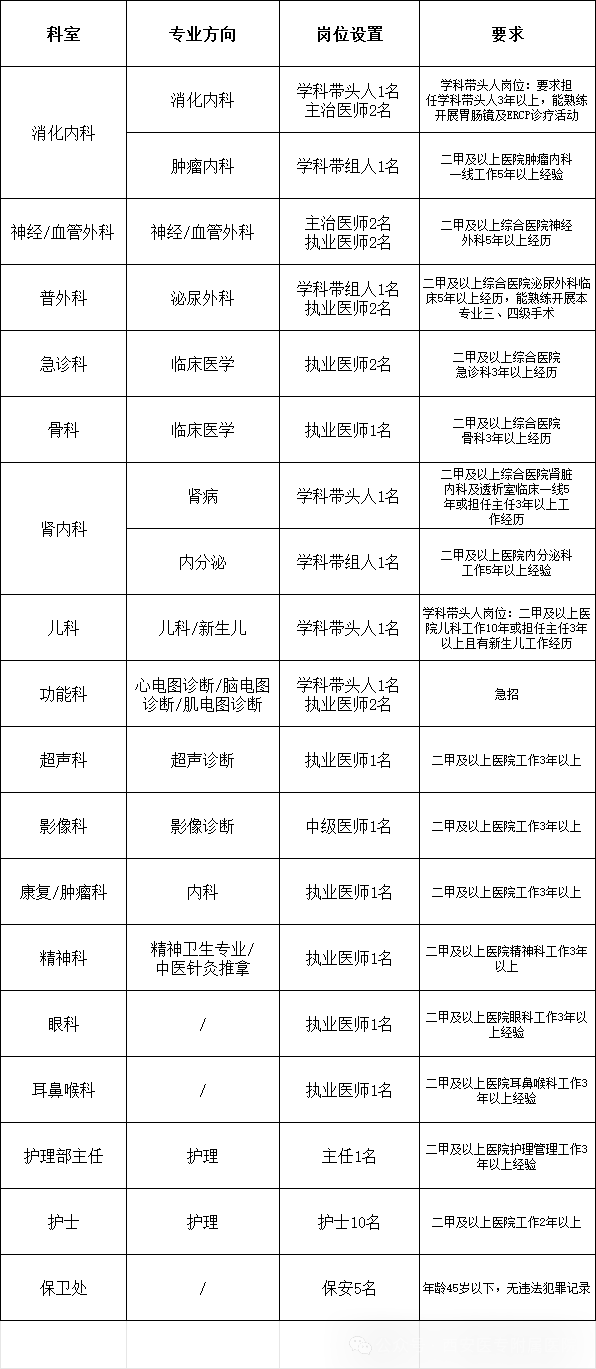4.医技科室岗位和行政职能科室岗位详见岗位要求。
