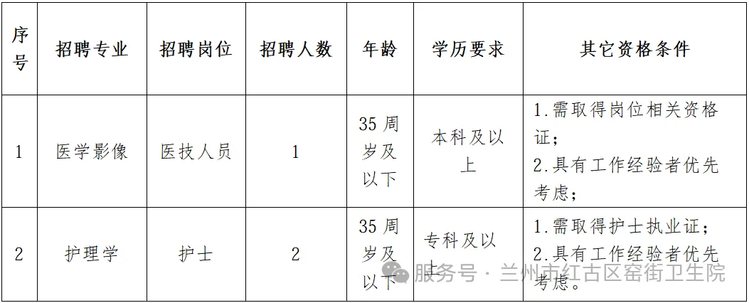 根据红古区人民医院窑街分院业务发展需要,现向社会公开招聘专业技术人员,公告如下: