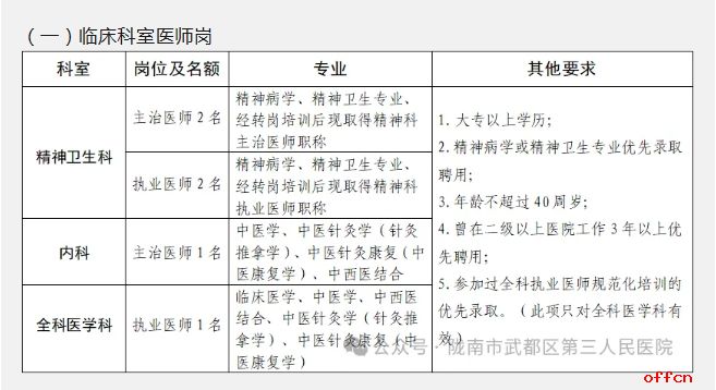 为了进一步加强我院临床医疗队伍建设,提升医院医疗技术水平,满足医院业务发展需求,优化人才梯队建设,更好地为区域群众提供优质高效的医疗健康服务,武都区第三人民医院面向社会公开招聘工作人员。现就有关事宜公告如下: