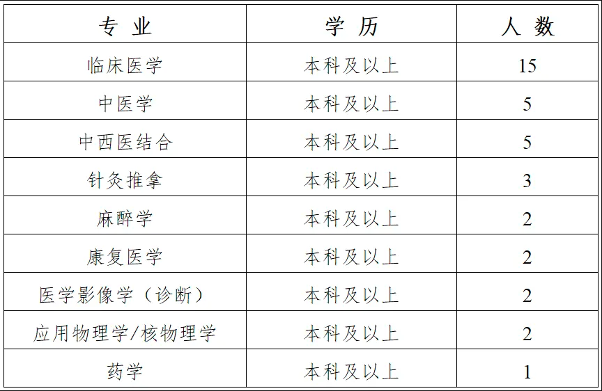 5.全日制普通高校本科及以上学历的应届毕业生;非应届毕业生需持有执业医师资格证(择业期内未落实工作单位的毕业生除外);年龄在35周岁以下(1991年1月1日以后出生);