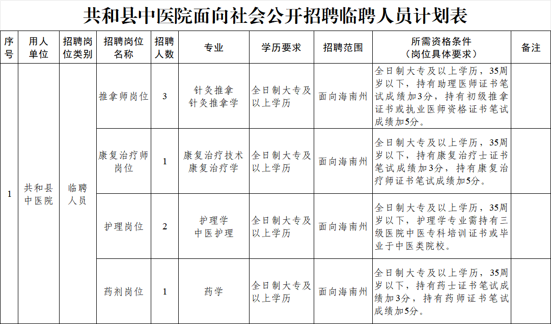 报名地点:共和县中医院行政楼三楼办公室。