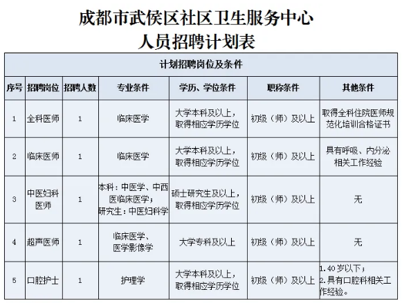 成都市武侯区簇锦社区卫生服务中心社会招聘编外专业技术人员(5人)已发布,医药人才网为大家收集整理事业单位卫生系统招聘信息,提供相关备考电子版资料和辅导课程。更多卫生人才招聘信息,可点击四川卫生人才招聘栏目。