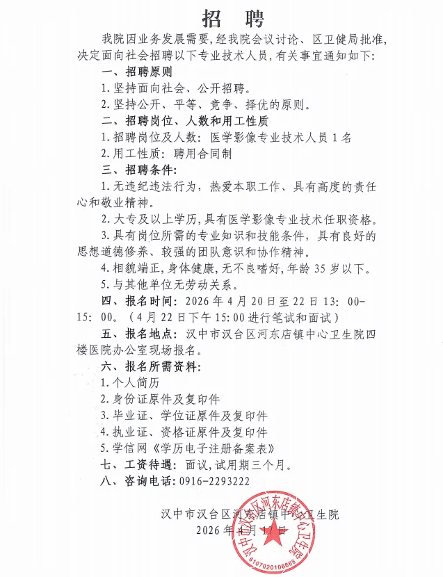 2026年汉中汉台区河东店镇中心卫生院招聘公告已发布,医药人才网为大家收集整理事业单位卫生系统招聘信息,提供相关备考电子版资料和辅导课程。更多卫生人才招聘信息,可点击陕西卫生人才招聘栏目。