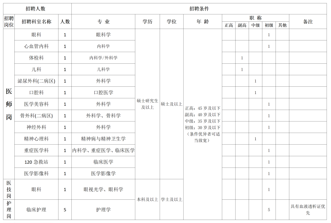 1.报名时间:2026年4月20日—4月24日 上午08:00—12:00,下午14:00—17:30 2.报名地点:西安市长安区文苑中路长安文化中心A座4楼人力资源科。 四、应聘资料要求: 1. 报名方式:应聘者下载《应聘信息登记表》,将填好的登记表及本人学历证书、学籍在线验证报告、相关资格证书电子版一并投递至邮箱:caqyyrlzyb@163.com。 2. 报名资料:通过初审后将电话通知面试日期,接到面试通知者请随身携带本人身份证、学历证书(最高学历为成教学历的,需提供初始全日制学历)、学籍在线验证报告、相关资格证书原件及复印件,以及其他报考岗位所需的证件(证明)原件及复印件。并提供社保参保证明,一寸免冠近照一张。 3.提供的材料请简明扼要、装订整齐(A4页面制作,勿做过多装饰)。 五、注意事项: 1. 个人资料请双面打印,所有复印件资料恕不退还,请自留备份。 2. 请确保所提供应聘信息的真实和有效,如发现有提供虚假信息,取消录取资格。禁止恶意重复报名,一经发现取消报名资格。 六、联系方式: 联系人:赵老师 联系电话: 029-85910889 西安市长安区医院应聘信息登记表.xlsx 文章来源:https://mp.weixin.qq.com/s/Qj-NghSPmkXmiux4D63Pbg