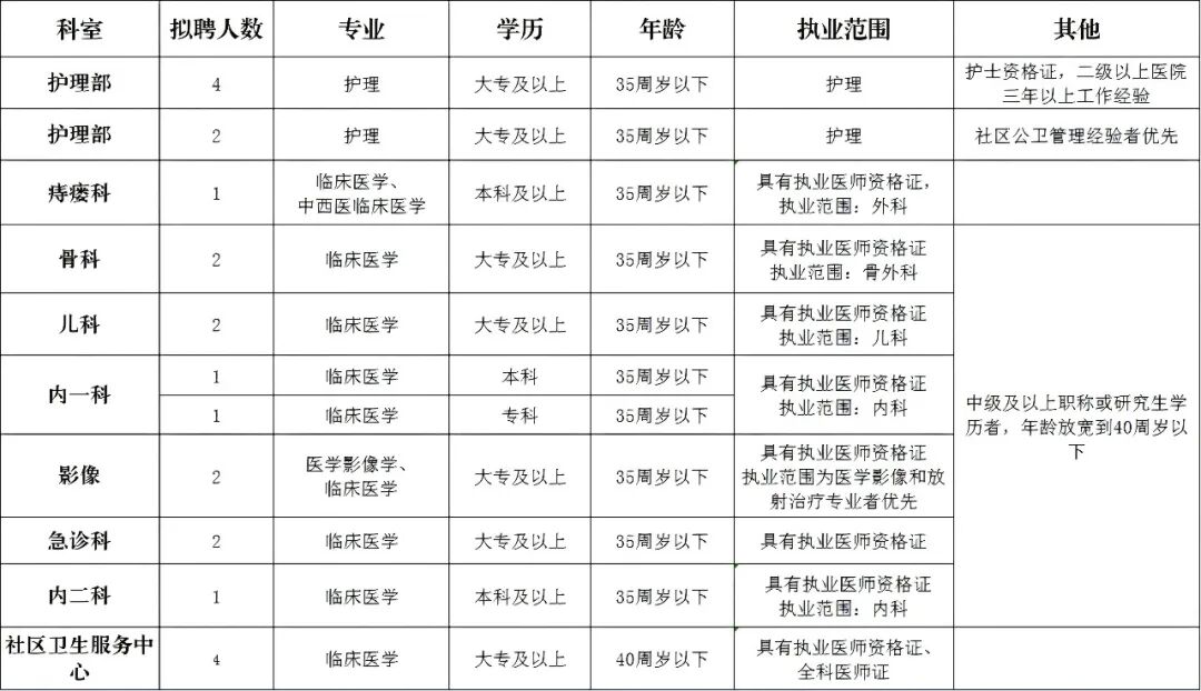 2.热爱医疗卫生事业,遵守国家法律法规,遵守职业道德,爱岗敬业,身体健康,有良好的服务理念和奉献精神,具备岗位所需的专业或技能条件。