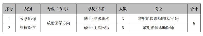 4.中级职称人员:学历须为硕士,条件优秀者可放宽至全日制本科临床医学相关专业(须具备相应岗位执业资质及3年以上相关临床工作经验)。