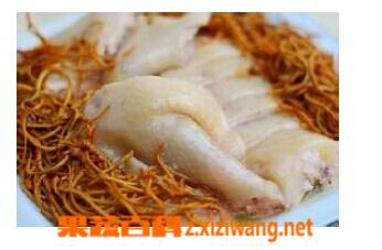 主要材料:虫草花三十克,鸡。虫草花的做法:现在做的这一款是虫草花瑶柱煲鸡,先把清清洗干净,然后再切好,再把鸡放进锅里,加水,煮开,然后再把水倒掉,然后再把瑶柱及红枣用清水浸软,再用水把虫草花用清水浸软,浸的这个水也是有营养的,所以说水是不能倒掉。再把将鸡、瑶柱、虫草花、红枣、姜片这些材料都放入电砂煲中,然后再加入适量的水,慢煮2小时即可。最后再加入适量的盐,一款虫草花堡鸡就宛成了。3.虫草花浸鸡的做法:先把鸡清洗干净,然后再用酒和腌一下,然后把虫草花放在水中泡软,然后一起放进锅里煲开,然后再把火调小,然后再浸十五分钟后再捞起,再在冷水里浸,鸡切好以后再把虫草花放在鸡的旁边,再和调味混在一起。