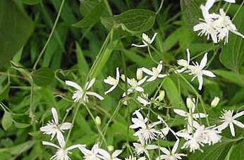 1、铁线莲有美化环境和净化空气的作用,这种植物多攀缘于一些高大的乔木或者灌木上面,是一些地区绿色篱强或者绿色植被的常用植物,它的花朵为白色,与绿色的叶子长在一起特别美丽诱人,是一些景区中的重要景观。
