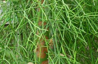 我们的青珊瑚是典型的灌木,高达7米左右,青珊瑚在幼年的时候,树形相当奇特,绿枝青翠,很能惹人注目。是室内盆栽的首选之一。