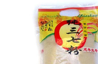 三七是一种草本植物,它是一味珍贵的中草药材,用三七的根茎制成的三七粉是制作云南白药的主要原料。三七粉药性温和,药味苦后带甜味。