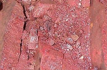 朱砂外用具有解毒功能,与雄黄、山慈菇、麝香、千金子等配伍,外涂治疮毒肿痛;与冰片、硼砂、玄明粉等吹喉,治疗口舌生疮、咽喉肿痛等症。