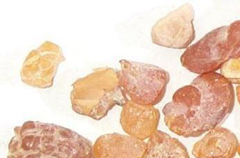 【化学成分】含树脂60~70%,树胶27~35%,挥发油3~8%。树脂的主要成分为游离α、尾-乳香脂酸33%,结合乳香脂酸1.5%,乳香树脂烃33%。树胶为阿糖酸的钙盐和镁盐20%,西黄芪胶粘素6%;此外,尚含苦味质0.5%。挥发油呈淡黄色,有芳香,含蒎烯,消旋-柠檬烯及α、尾-水芹烯,其主要的芳香成分未明。