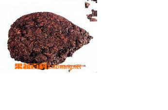 【性状】干燥树脂呈不定形的块状物,大小不等,表面有沟纹及因布包而遗留的布纹,赤褐色或紫褐色,质硬而脆,断面紫褐色至黑褐色,有玻璃样光泽,有时有小孔,用火燃之,冒烟呛鼻,研成粉末则呈鲜艳的深红色,无香气,味甘咸,嚼之砂样。