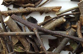 性状 茎枝呈圆柱形,长3~4cm,直径0.2~1cm;表面红褐色或灰色,具细纵纹,并有众多细小皮孔,小枝有棕红色细毛。有时逞叶,多卷缩,完整者呈卵圆形,全缘,棕色,革质,幼叶亦被棕红色细毛。茎坚硬,断面不整齐,皮部红棕色,木榈色较浅。无臭,味涩。