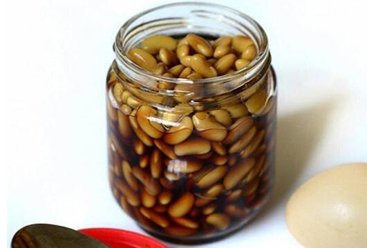2、炒好以后的黄豆取出降温,装入得准备好的干净,玻璃瓶中加入,准备好的米处密封浸泡,浸泡过程中每天摇晃1~2次持续浸泡5~7天以后,里面的醋泡黄豆就能泡好,取出以后可以直接吃,这样做醋泡黄豆能缓解人类的糖尿病和高血压,而且能防止人类出现腰腿疼痛,更能预防便秘和肥胖。