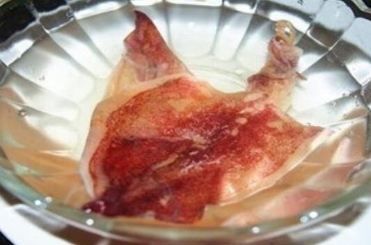 2、继续浸泡3四个小时以后里面的干鱿鱼就能膨胀软化,这时吧,已经泡好的鱿鱼取出来,用流动的清水反复冲洗,可以把干鱿鱼表面的碱洗掉,冲洗干净以后还要把由于放在水中浸泡,在需要烹调食用时,再把它取出切成自己需要的样子就可以。