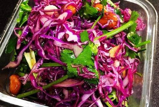 甘蓝特别适合用来做沙拉池,再用甘蓝做沙拉的时候,需要选择那种紫色的甘蓝,把它洗净以后切成丝可以放在废水中焯一下,去掉水分以后放到干净的大碗中,再加入适量圣女果和小黄瓜,最后淋上适量的沙拉酱吃的时候调匀就可以。