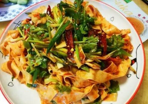 油豆皮特别适合用来做凉拌菜,在做的时候需要把油豆皮提前泡软,切成块再准备一个胡萝卜,把它洗净以后也切成薄片木耳提前用清水泡发,在准备适量的香菜,把木耳和油豆皮放在沸水中焯一下,取出以后过冷水,然后放入切好的胡萝卜和香菜,再放入适量葱丝和生抽香醋,麻油以及白糖和食用盐调匀以后就能吃。