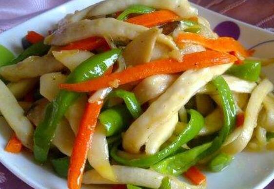 2、杏鲍菇和青红椒搭配在一起炒也特别好吃,在做的时候需要把杏鲍菇洗净以后切成片,再把准备好的青红椒洗净以后去掉里面的种子,也切成滚刀块儿,在炒锅中放油以后,先把青红椒入锅炒出香味,再把杏鲍菇入锅一起炒炒,然后放适量生抽和蚝油,再放入适量食用盐调味,炒熟后直接出锅,做好的杏鲍菇也会特别好吃。
