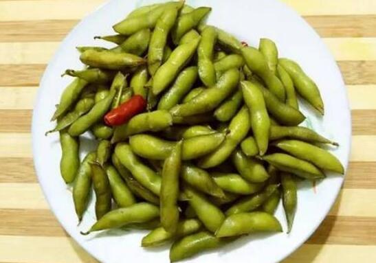 4、煮毛豆的时候放几个红辣椒容易让毛豆入味,而且煮好后的毛豆会香辣爽口滋味诱人,不过大家在煮毛豆的时候一定要注意,毛豆入锅后清水一定要放足,在煮的过程中不能中途加水,不然会影响毛豆煮好以后的口感和味道。