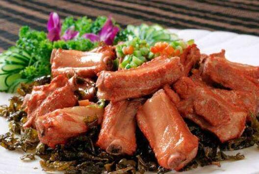 茶香小炒骨也是特别流行的,融合菜在做的时候需要准备猪精排250克,铁观音茶叶30克,另外还要准备葱姜蒜各适量,除此以外,熟芝麻和蒜香粉,生粉,白糖,味精等都要适量准备一些,把准备好的排骨剁成小段,加生抽蚝油腌制半小时,然后入热油炸到表面金黄取出,再把准备好的茶叶提前泡发,然后在锅中留底油放入茶叶炒香,再放入葱姜蒜炒出香气,放入炸好的排骨翻炒均匀,最后放白糖和食用盐调味,出锅后撒上芝麻即可。
