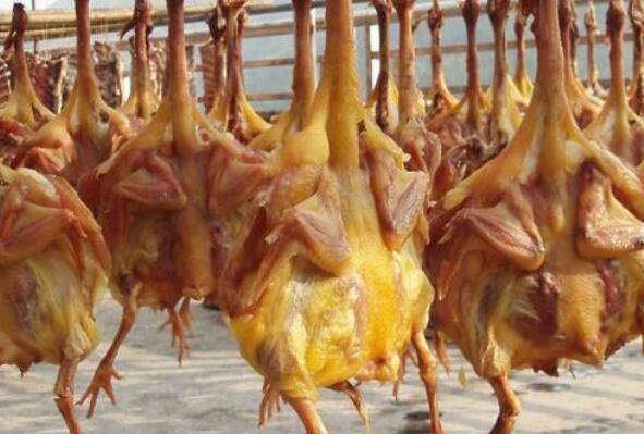 风干鸡很多人都吃过,但这种食材的制作方法也特别残酷,据说在制作风干机时,要以极快的速度给鸡拔毛,取出它的内脏,然后再把调味料填入到鸡的身体内部,最后缝上挂的阴凉通风的地方风干,也就是说在没有放学的情况下就把鸡杀死,这时的鸡必须是活的,据说做好以后挂起来风干时还能听到鸡的叫声。