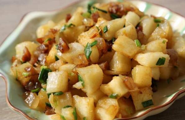 木薯炒着吃滋味也特别好,在做的时候可以准备一块火腿,把它切成片状,再把准备好的新鲜木薯削皮以后切成片在炒锅中放食用油,加热后放适量葱花炒香,再把木薯和火腿一起路过快速翻炒,放少量生抽,加食用盐调味,继续炒三分钟,炒到木薯熟透以后直接出锅就可以。
