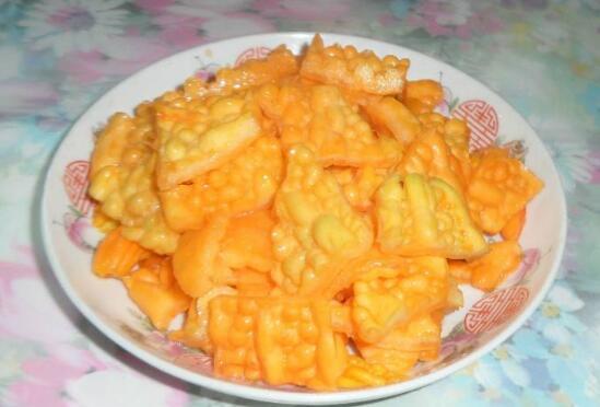 老苦瓜是人们在植物苦瓜的果实,成熟后没及时采摘,让它在苦瓜藤上自然生长,老化后得到了一种食材,这种老苦瓜的外表多为橙红色,而且里面的种子完全成熟,它的口感虽然没有绿色的苦瓜鲜嫩,但养生功效特别出色,人们食用以后能保健身体。