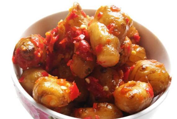 2、随腌随吃能保持酱洋姜的脆嫩口感,在腌制洋姜时可以用清水把它洗净,然后再把它切成片状放在干净的容器中,放入适量剁椒,再加入适量食用盐和甜面酱调匀,以后腌制3~5天以后,就要把腌好的酱洋姜取出,用清水冲洗干净以后直接吃,滋味特别好。