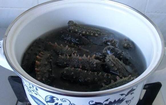 2、处理干净的干海参,放到无油无水的干净锅中,加入适量清水,水要没过海30~15厘米,然后盖好锅盖,用大火烧开以后再用小火继续加热40分钟,关火后闷半小时,然后再用小火继续加热半小时,在关火焖半小时,焖好以后把海参取出,放到冷水中降温,再按自己的需要去烹调食用就可以,如果一次吃不完则可以把泡发的海参放到冰箱里冷冻保存。