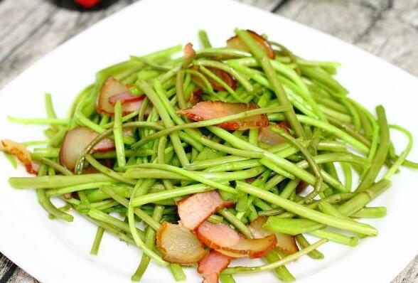 腊肉炒泥蒿也是它的长线吃法,在做的时候需要提前把腊肉洗净以后入锅蒸软,然后再把它切成薄片,泥蒿则需要在洗净以后切成段状,在炒锅中放油加热后放入蒜末和红辣椒炒香以后再把腊肉入锅炒到成透明色最后才能放入泥蒿,放入以后炒到泥蒿变软加食用盐和生抽调味,调匀以后就能出锅。