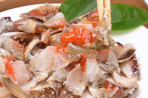 5、咸梭子蟹在腌制时除了这种方法以外,还可以把新鲜的梭子蟹洗净以后切成块状,然后再放到大碗中腌帽,腌制时的料汁调制方法与上面一样,只是这样能让梭子蟹尽快入味,在腌制两三个小时以后以就能取出吃,而且滋味也特别好。