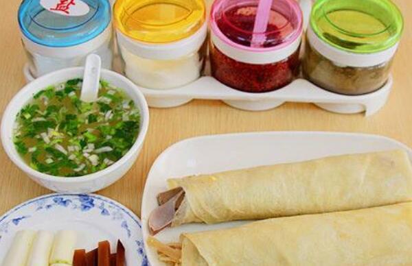 3、把准备好的葱和香菜全部切成细末,放入适量花椒面放在大碗中,冲入骨头汤,然后把自己喜欢的食材捞出切碎,用春饼卷着吃,吃的时候与骨头汤相搭配滋味特别好,它能让人们享受到朝天锅的美味也能驱寒取暖补中益气。