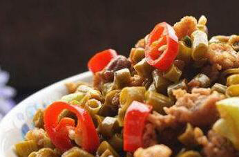 1、腌豆角炒辣椒