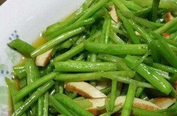 这个做法非常简单,先准备好芦篙,将其清洗干净之后,切成段状,再将豆干清洗好,切成条状。锅子里面加油,待油热好,放入蒜末,快速翻炒爆香,接着将芦篙和豆干放入,炒两分钟后,加入食用盐就可以起锅了。正个过程当中,一定要快速,盐不要放太多。